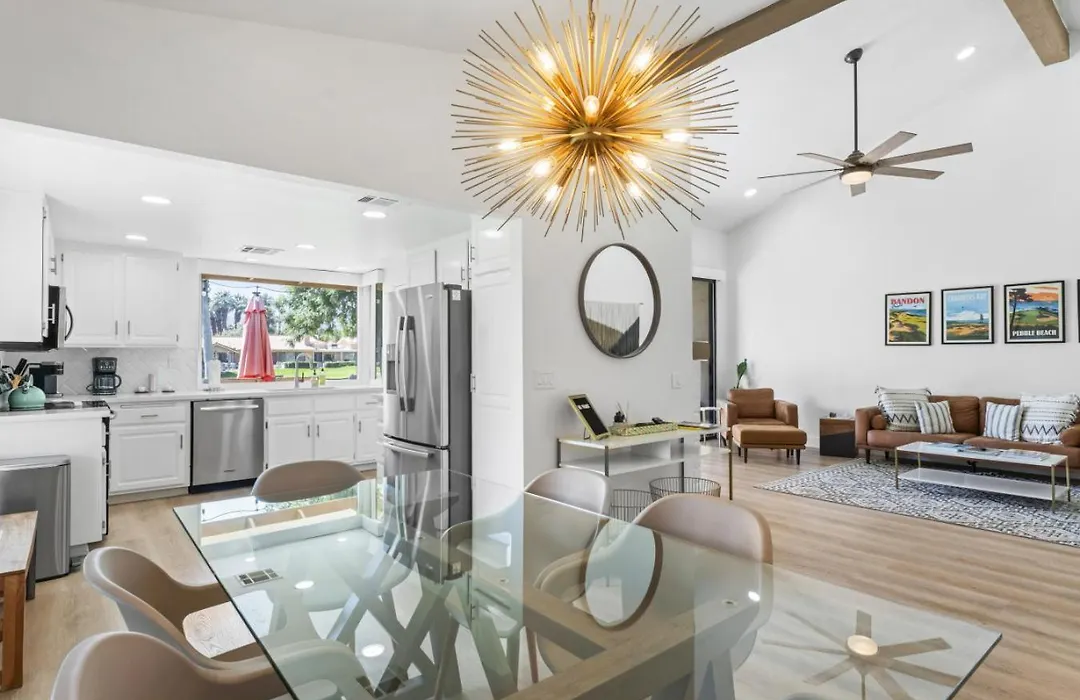 Offering a hot tub for a relaxing experience, The Palmer Monterey Country Club Hole 6 Resort Amenities Palm Desert villa is located a 25-minute walk from City of Palm Desert Civic Center Park.